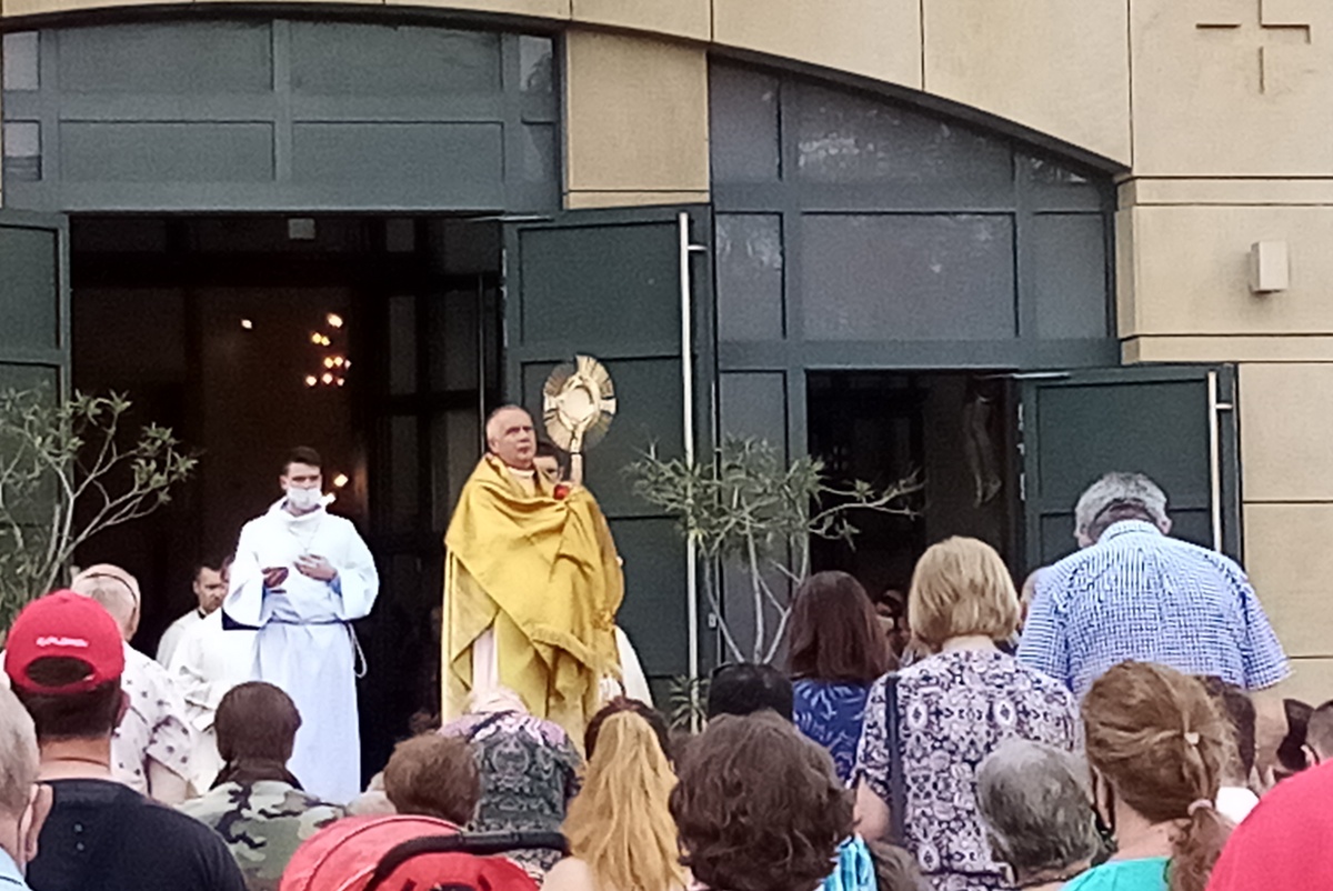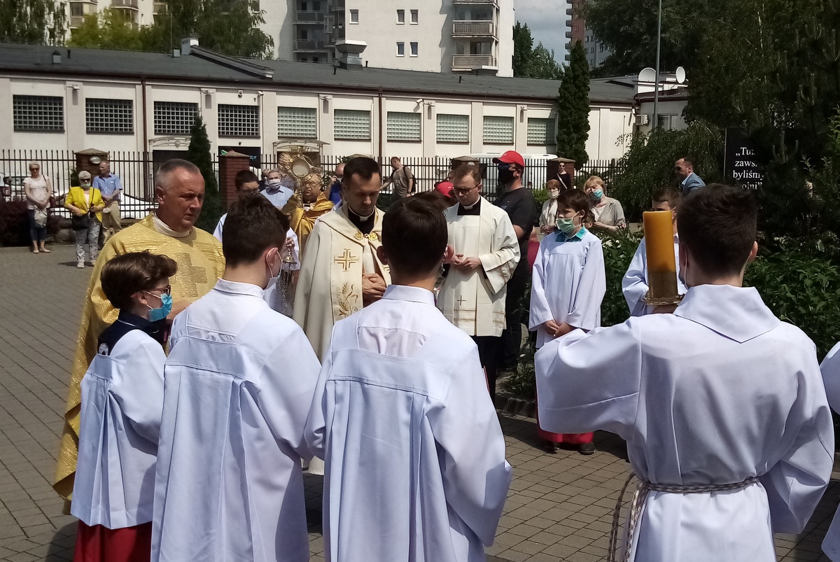 W czwartek 11 czerwca 2020 roku przypadła Uroczystość Najświętszego Ciała i Krwi Chrystusa, zwana popularnie Bożym Ciałem. Po Mszy Świętej o godz. 12.00 ze względu na epidemię odbyła się symboliczna procesja eucharystyczna do czterech ołtarzy na placu przed kościołem.