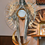 Monstrancja przypominająca postać Niepokalanej, jest darem Polaków dla fatimskiego sanktuarium, w 100. rocznicę objawień. Zanim zostanie przekazana do Fatimy, peregrynuje po polskich parafiach, przypominając o fatimskim przesłaniu, nadal aktualnym wezwaniu do modlitwy o pokój, do nawrócenia oraz o potrzebie miłosierdzia.